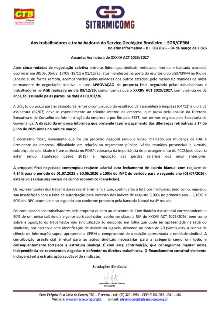 Boletim 03/2026 – SGB / CPRM – ACT 2025/2027
