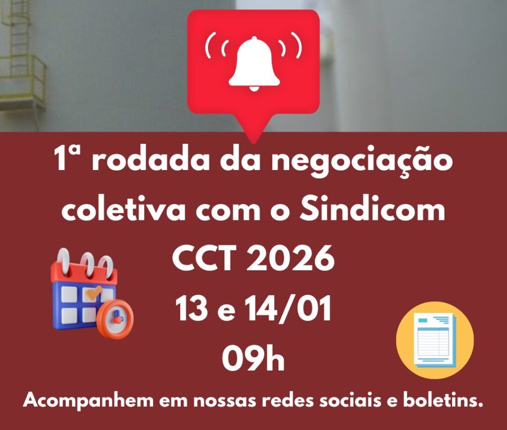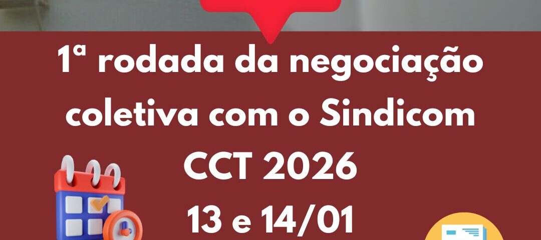 A 1ª rodada da negociação coletiva que visa a renovação da Convenção coletiva de trabalho (CCT 2026) com o sindicato patronal, SINDICOM, está marcada para os dias 13 e 14/01/26.