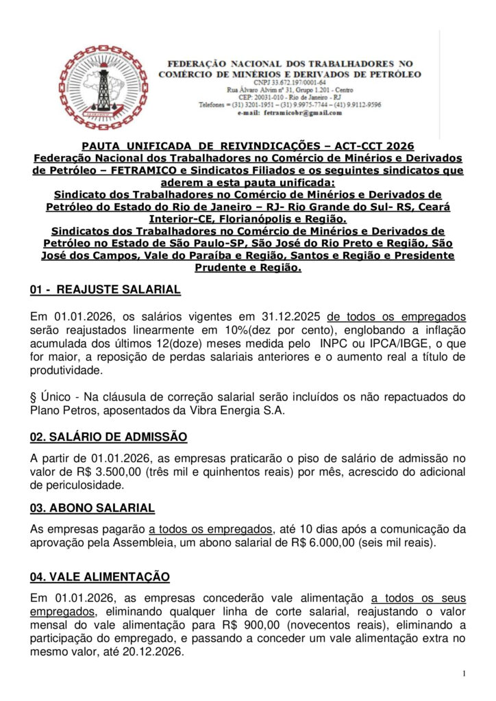 🚨SINDICOM – CCT 2026 – Trabalhadores nas empresas Distribuidoras de Combustíveis e Lubrificantes.