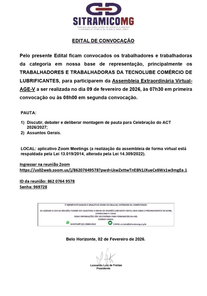 📣TECNOLUBE COM. LUBRIFICANTES – CONVOCAÇÃO AGE VIRTUAL – ACT 26/27